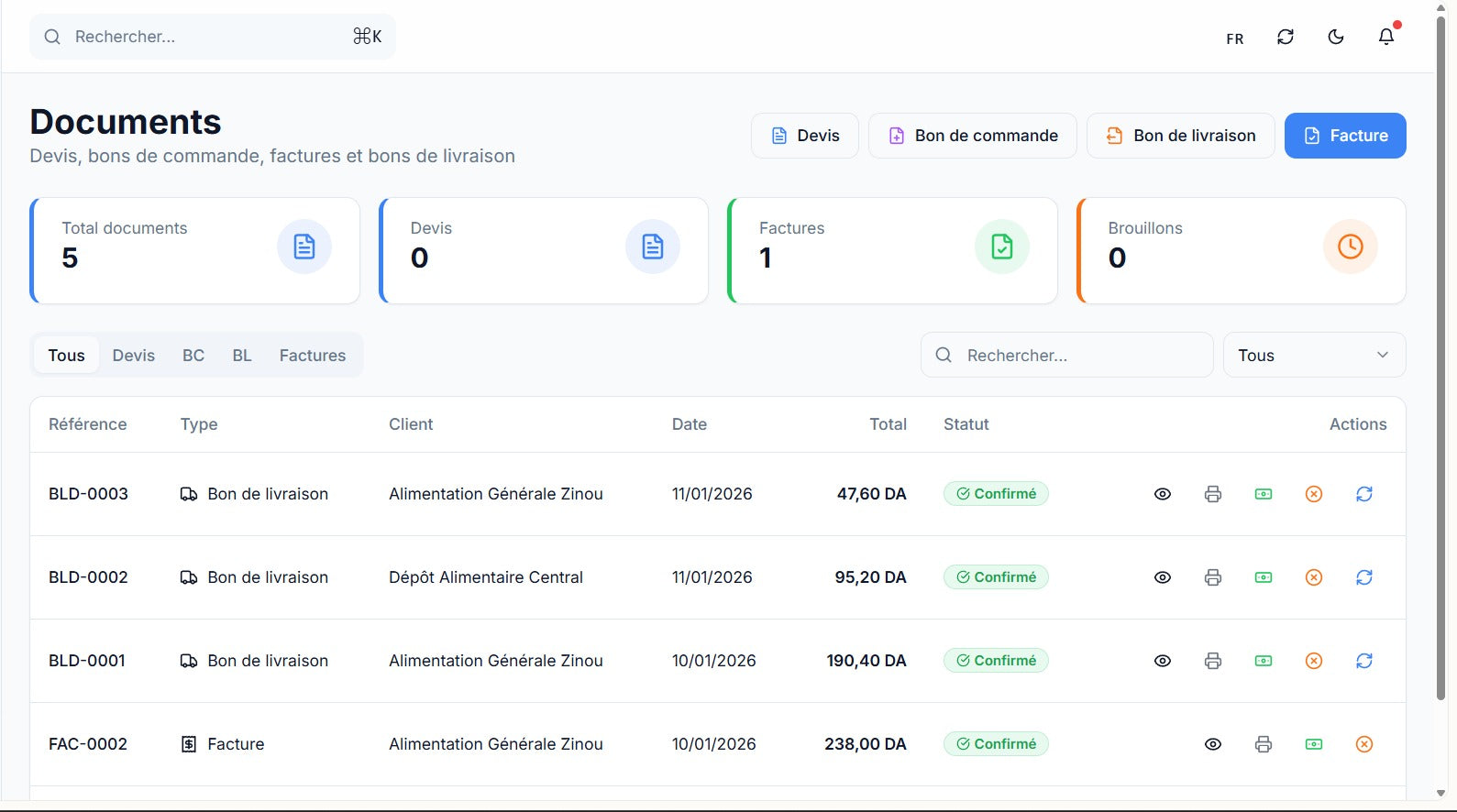- Documents (BL / facture / BON DE COMANDE / DEVIS )
